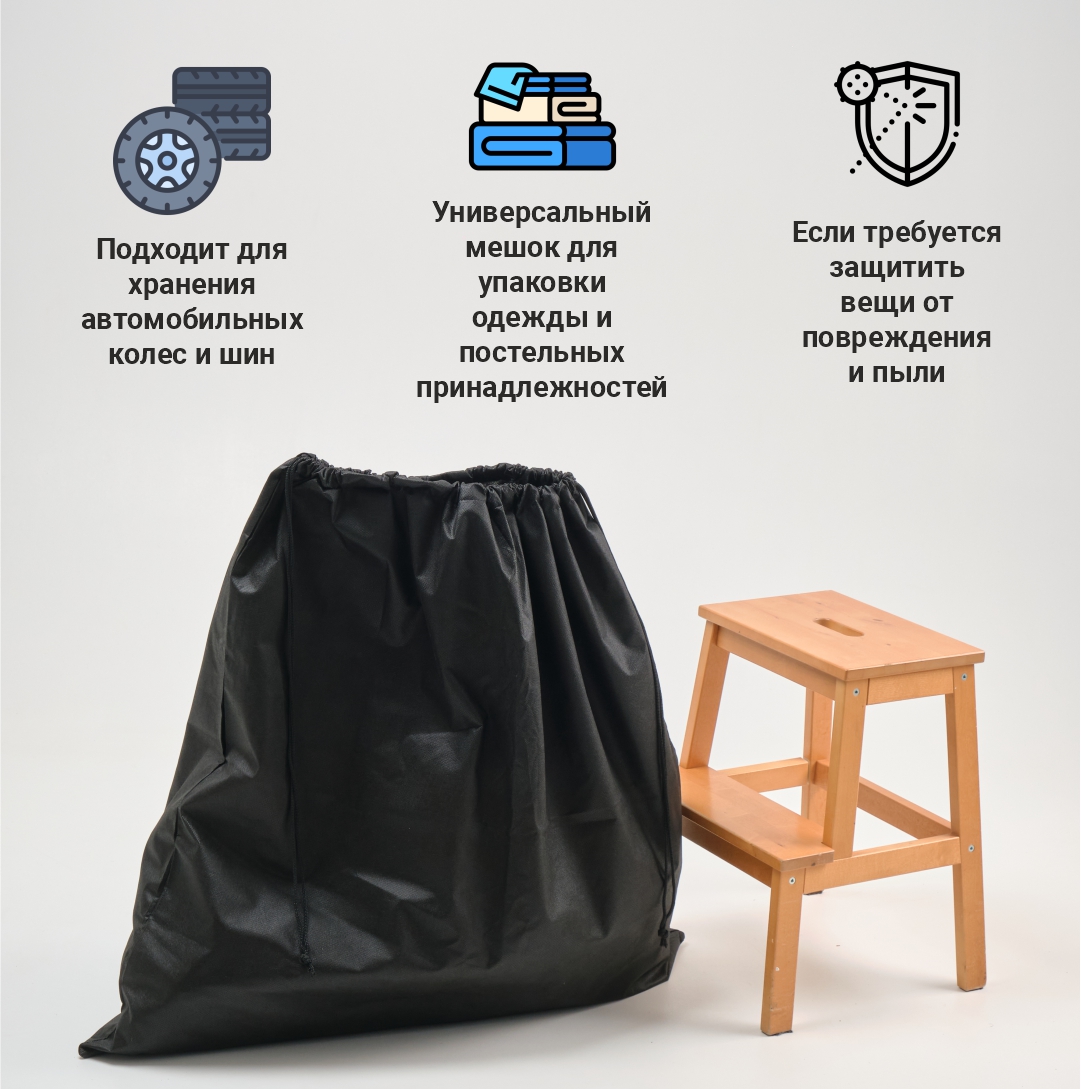 Идеально подходят для хранения автомобильных колес и шин, крупногабаритных изделий, чтобы защитить их от загрязнений и пыли, постельных принадлежностей, одежды и т.д.Мешок из спанбонда приятный на ощупь, легкий и компактный.